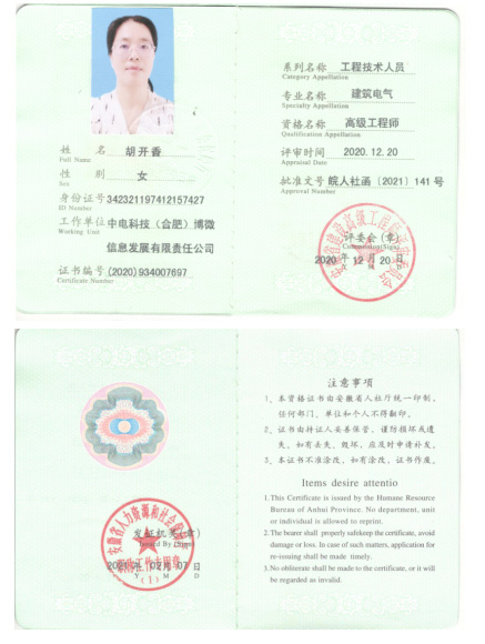 高級(jí)職稱(chēng)-胡開(kāi)香建筑電氣
